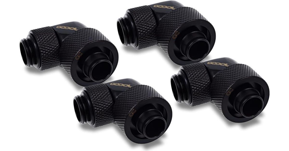 Alphacool Eiszapfen 16/10mm Anschraubtülle 90° drehbar G1/4 - 4pcs Set Deep Black (17613)