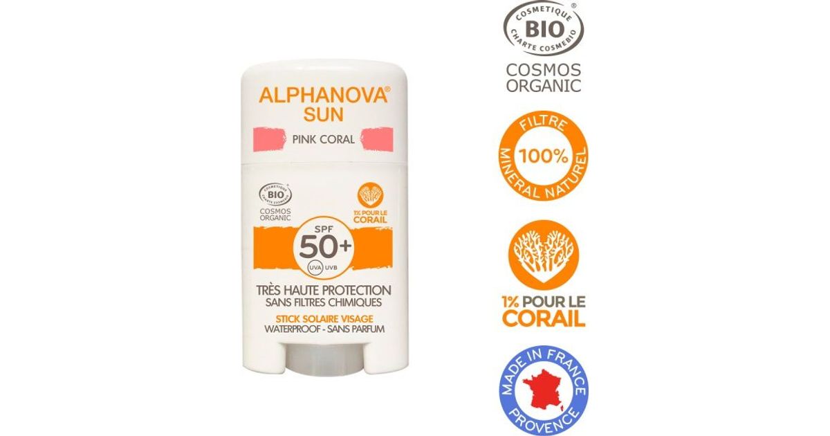 Alphanova Alphanova Sun, Krem z filtrem w sztyfcie, SPF50+, Pink Coral, 12 g