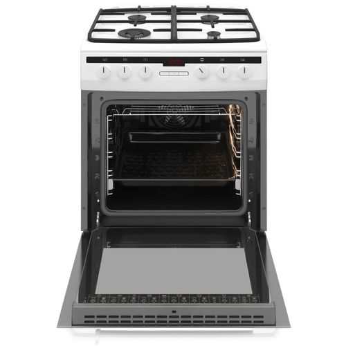Amica 618GE3.39HZpTaDpNA(W), Eraldiseisev pliit, Valge, Esikülg, Gaas, Roostevaba teras, Keskmine