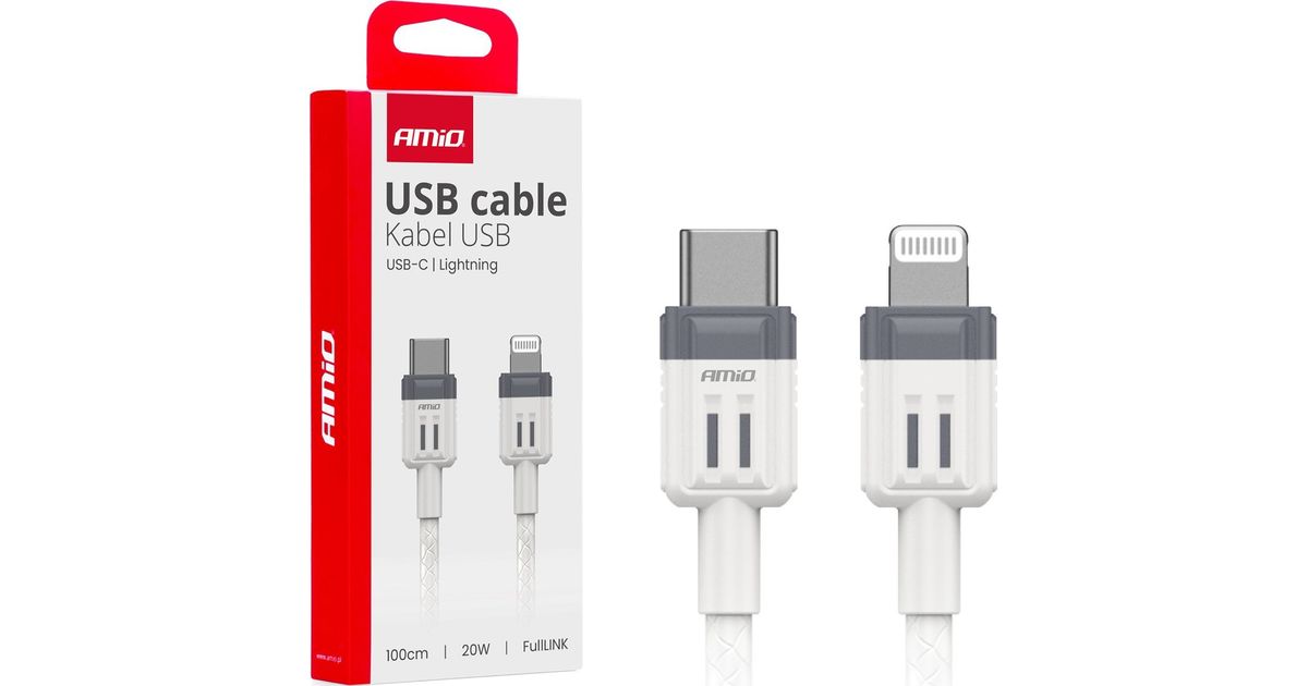 AMiO auto laadimiskaabel USB-C laadimiskaabel - iPhone Lightning fulllink 20w 100cm amio-03910