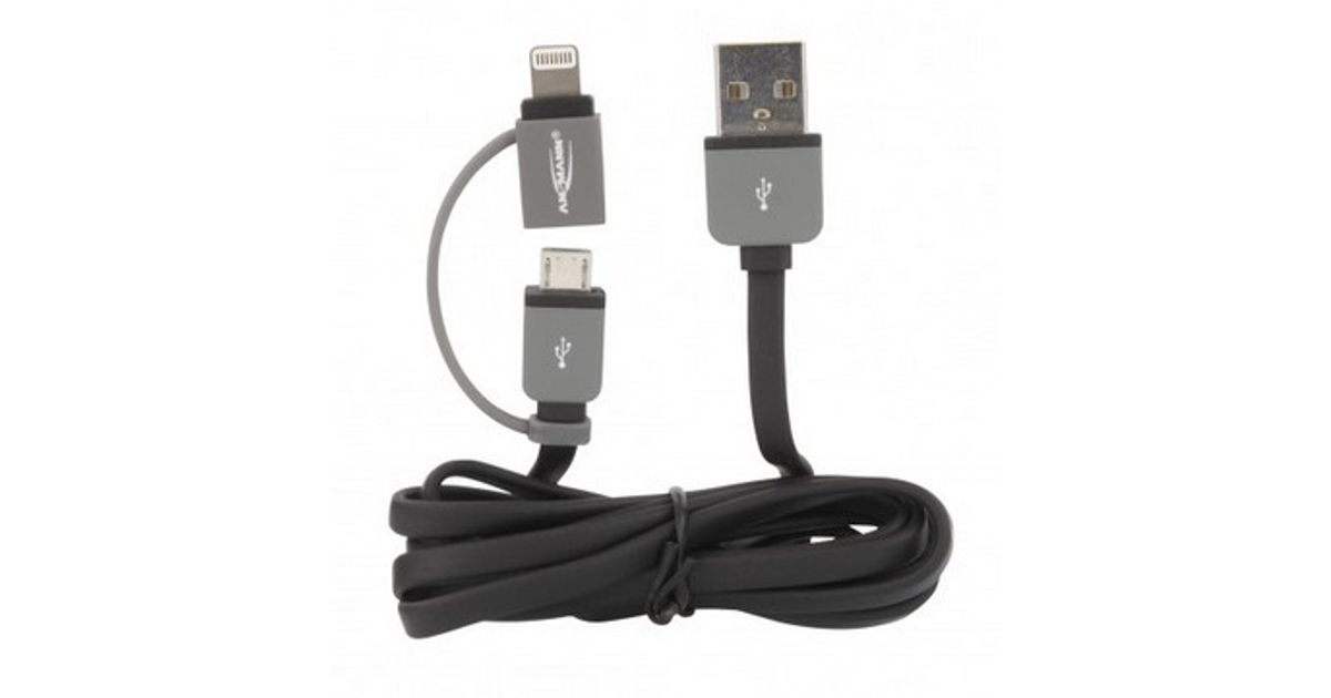 Ansmann 1700-0037, 1 m, USB A, Micro-USB B/Lightning, Meessoost/meessoost, Must, Hall