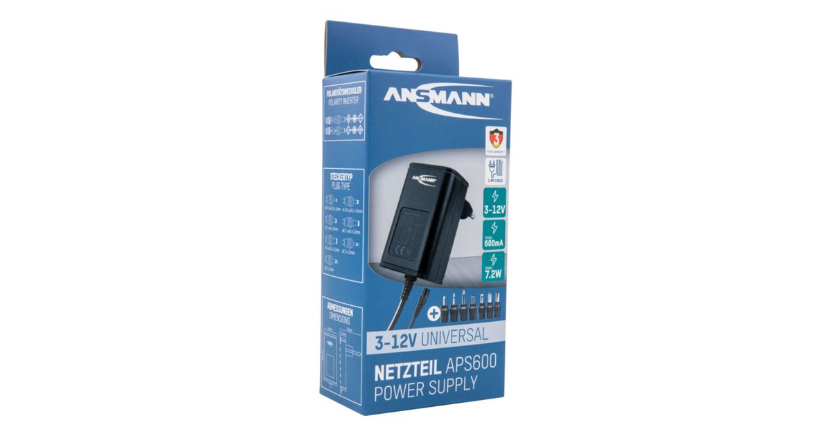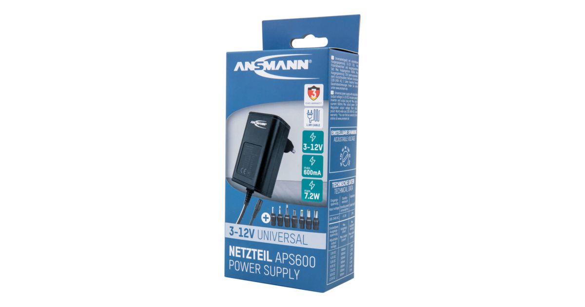 Ansmann APS 600, 7,2 W, 100 - 240 V, 50/60 Hz, 0.6 A, 1,8 W, 7,2 W