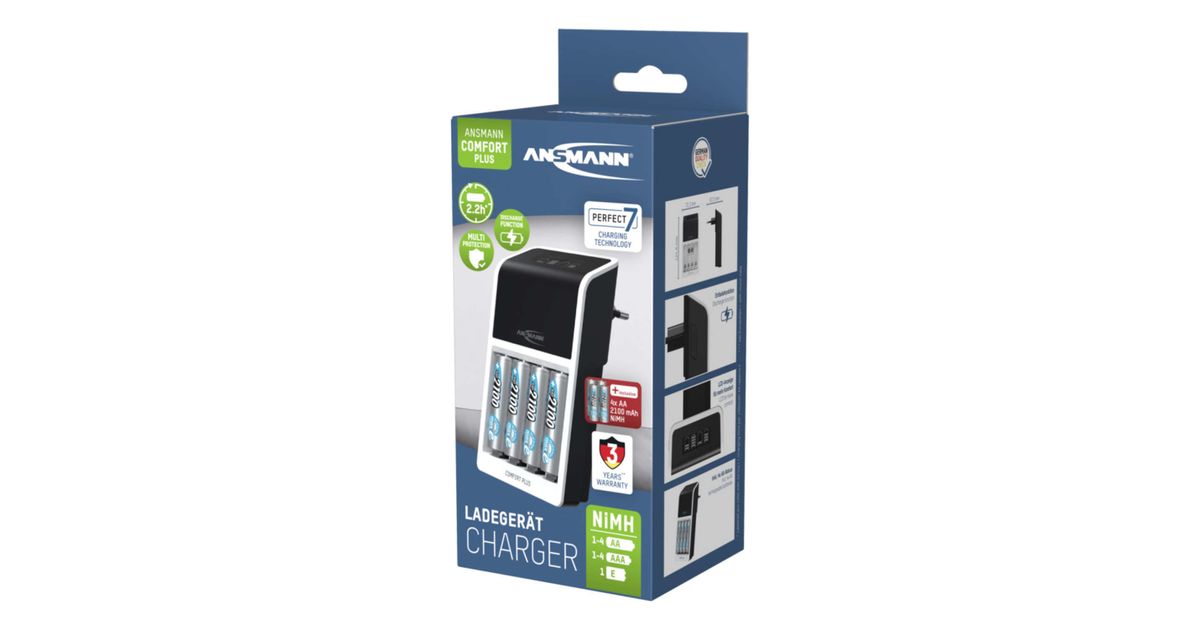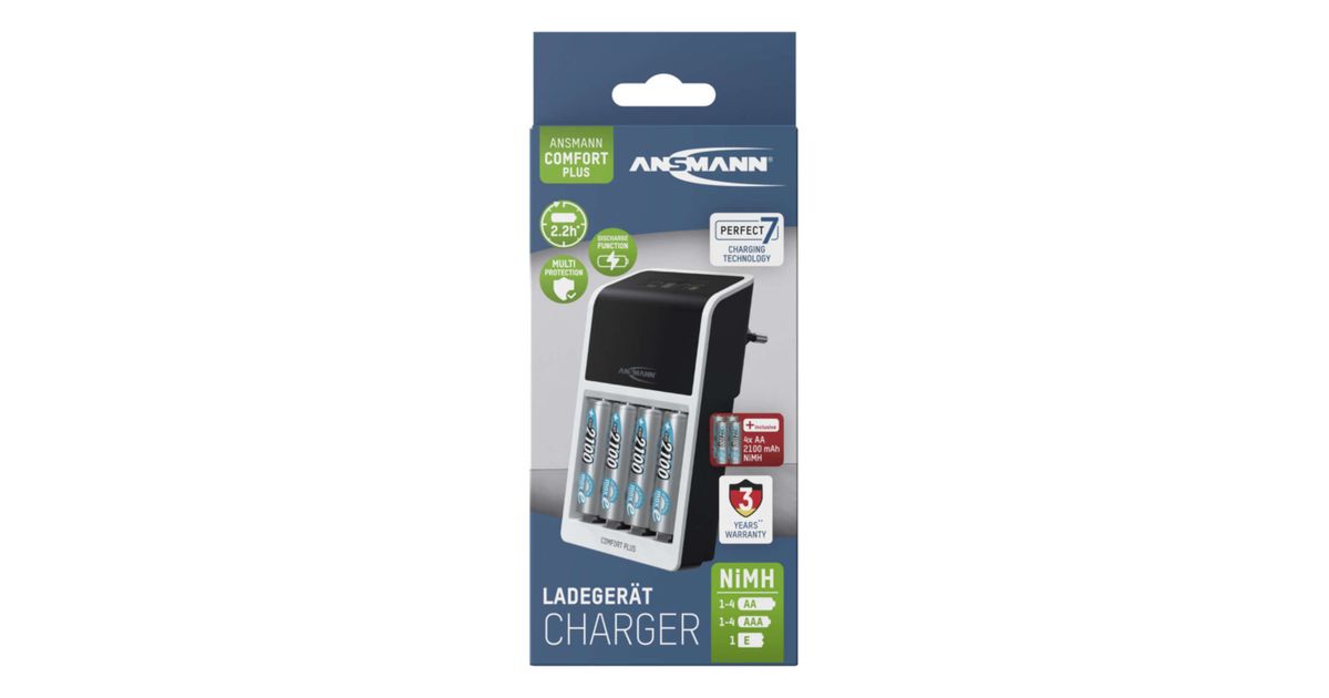 Ansmann Comfort Plus, Nikkel-metallhüdriid (NiMH), Ülelaadimine, Ülekütmine, 9V, AA, AAA, 4 tk, Akud kaasa arvatud