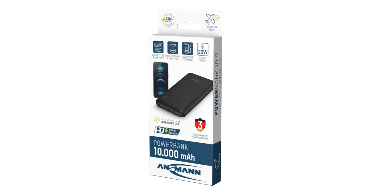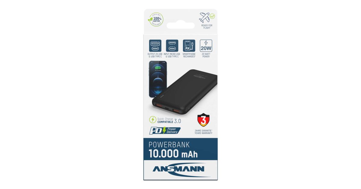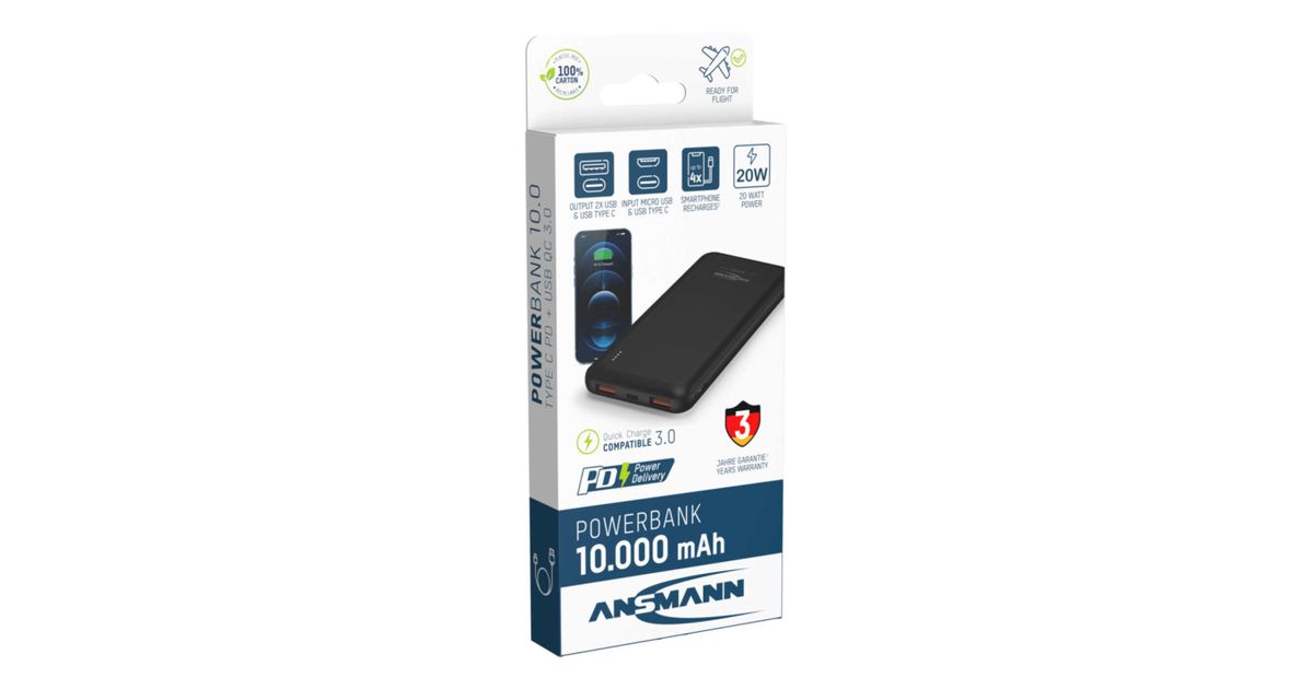 Ansmann PB320PD, 10000 mAh, Quick Charge 3.0, Must