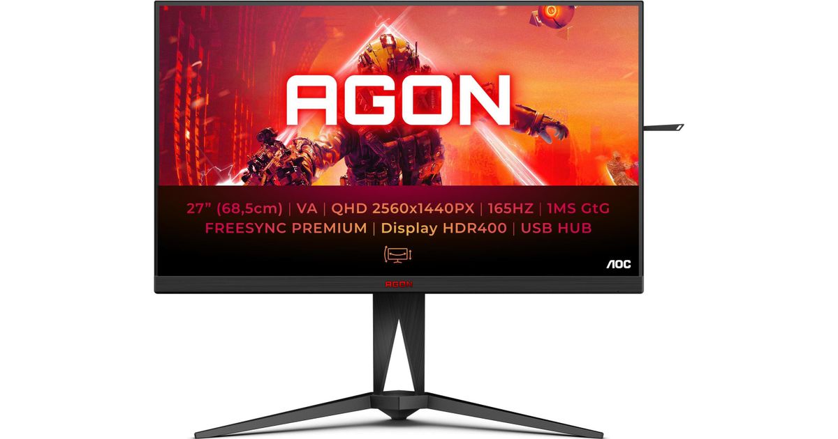 AOC AGON AG275QXN, 68,6 cm (27"), 2560 x 1440 pikslit, Quad HD, 1 ms, Must, Punane