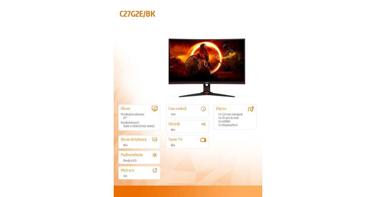 Tootja: AOC Tootekood: 189402473 EAN: 04038986111300 MPN: C27G2E/BK