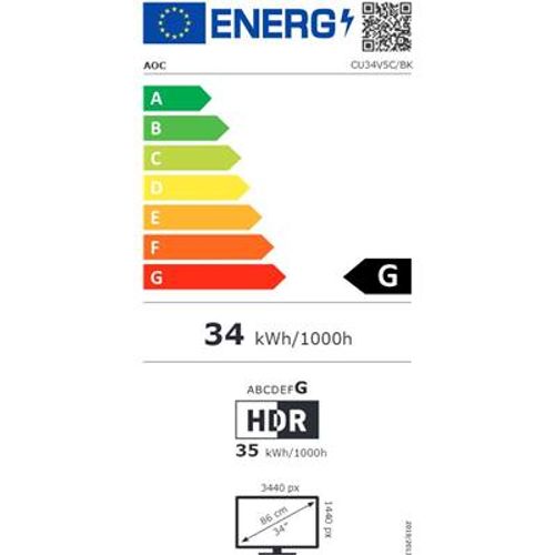 AOC V5 CU34V5C, 86,4 cm (34"), 3440 x 1440 pikslit, Wide Quad HD, LED, 1 ms, Must