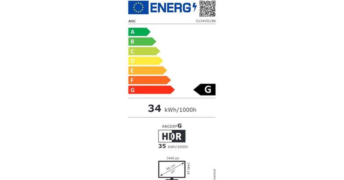 AOC V5 CU34V5C 86,4 cm (34") 3440 x 1440 pikslit Wide Quad HD LED Must