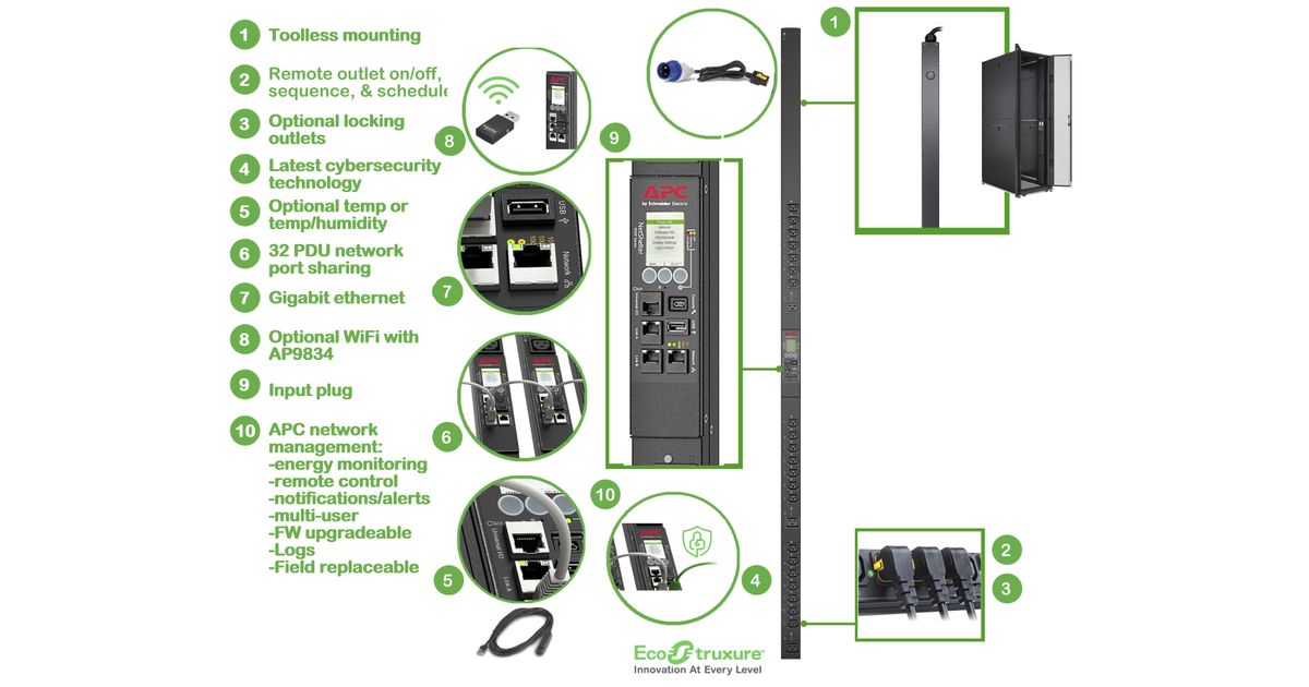 APC APDU9959EU3, Lülitatud, 0U, Ühefaasiline, Vertikaalne, Must, LCD