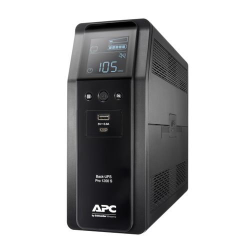 APC BACK UPS PRO BR 1200VA, Liini-interaktiivne, 1,2 kVA, 720 W, Siinus, C13 pistikut, 8 vahelduvvoolu kontakt