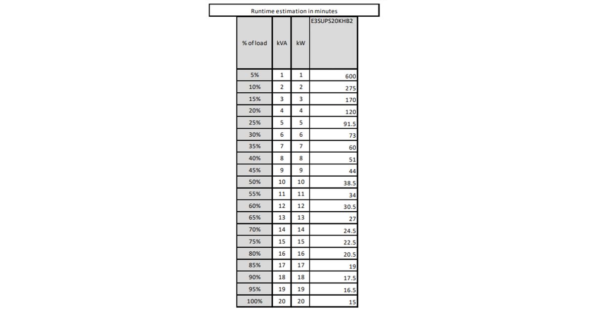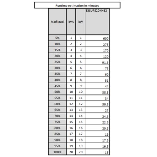 | Tüübipärane varundamisaeg täiskoormusega | 30 min |