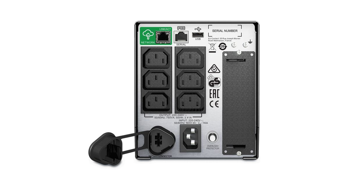 APC SMT750IC, Liini-interaktiivne, 0,75 kVA, 500 W, Siinus, 151 V, 302 V