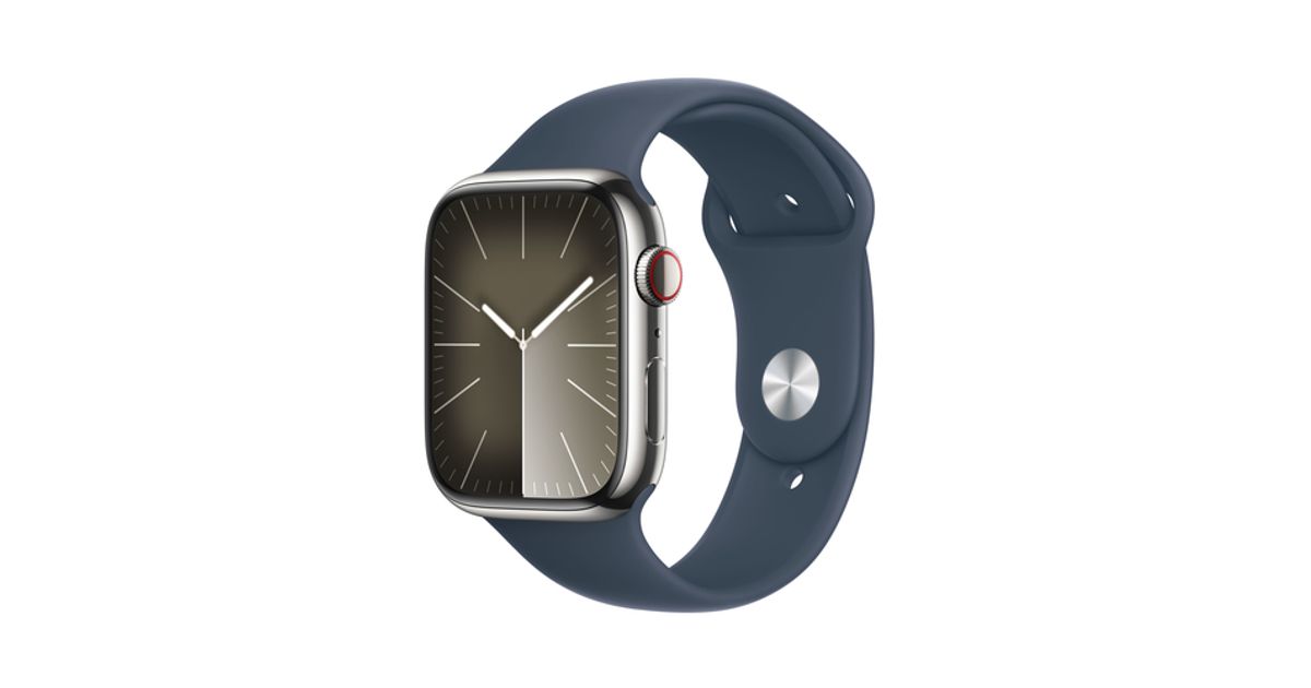 Apple Watch 9 Cell 45mm Sil. Edelst. Blau Sportarmb. S/M