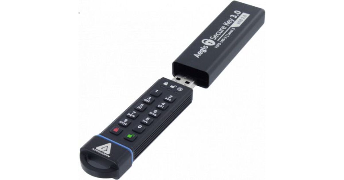 Apricorn Aegis Secure Key 3.0, 30 GB, USB tüüp A, 3.2 Gen 1 (3.1 Gen 1), 195 MB/s, Kork, Must