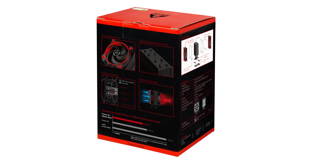ARCTIC Freezer 34 eSports DUO Protsessor Jahuti 12 cm Must, Punane