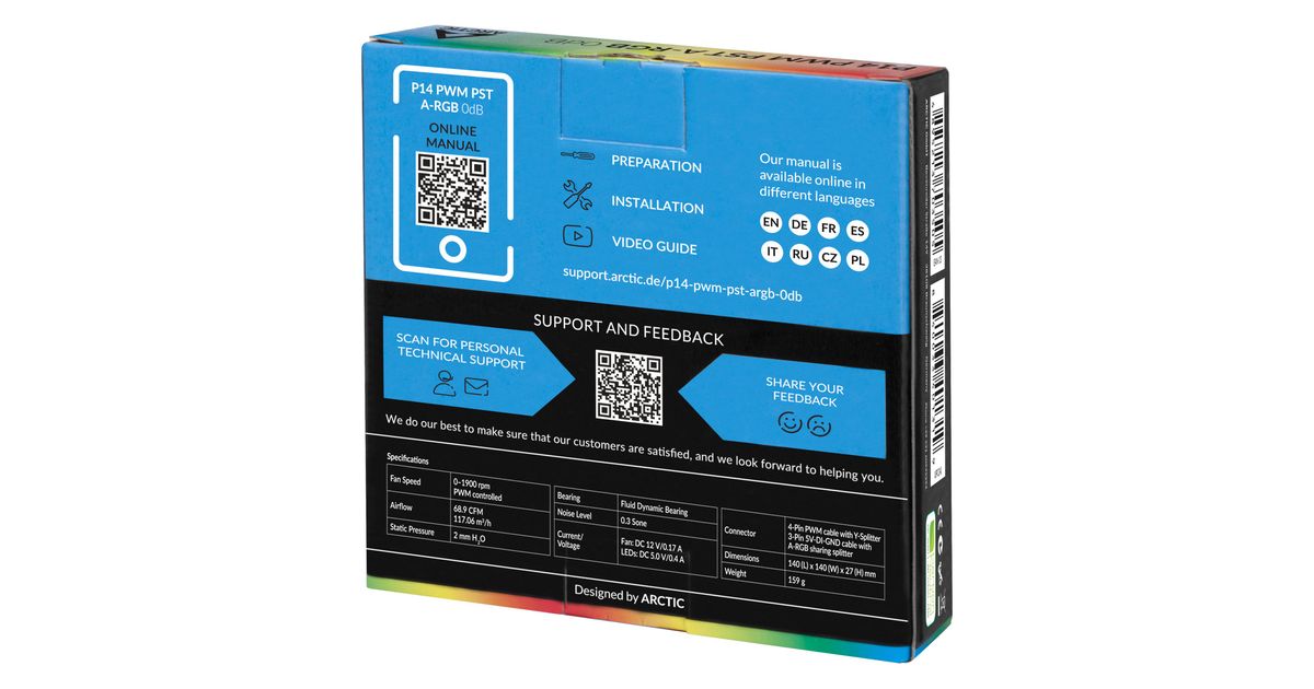 ARCTIC P14 PWM PST A-RGB 0dB, Ventilaator, 14 cm, 1900 RPM, 0,3 soon, 68,9 cfm, 117,06 m³/h