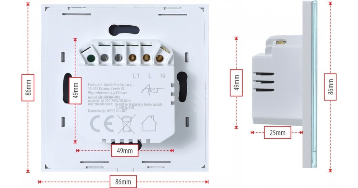 Art SMART LIGHT SWITCH ZIGBEE 3.0 üksik valge ART oem - Tark kodu - Kodu - MT Shop