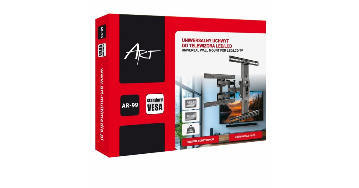 ART Uchwyt do TV LCD/LED 40-75" 45kg regulacja pion/poziom 52-380mm max VESA 600x400