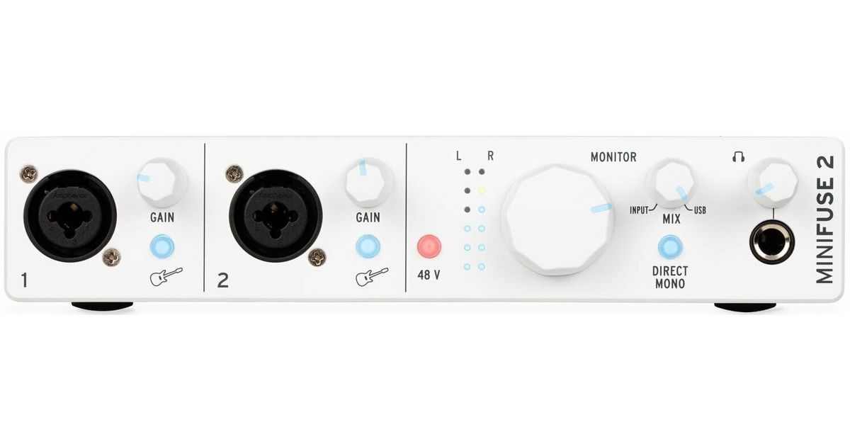 MiniFuse 2 is a next-gen audio & MIDI interface that gives you everything you need to make music and audio your own way. With unmatched sound quality, smart connectivity, and an exclusive music-making software pack, this is a portable audio companion evolved.Main FeaturesIncluded Arturia instruments - 500 vintage & modern keyboard presets with Analog Lab IntroArturia FX:Rev PLATE-140 reverbPre 1973 vintage preampDelay TAPE-201 echoChorus JUN-6 analog chorusAbleton Live Lite - compose, record, produce anythingTutorials - Learn recording and music production with MiniFuse, starting with the basicsExclusive content - Tips, tricks, and advice from industry expertsDedicated online portal - Access everything you need online in one placeSubscriptions - Complimentary introductions to world-class audio & mixing services2 x combo Mic/Inst/Line XLR Input with 48V phantom power2 x 1/4" TRS balanced line outputs with volume control1 x stereo headphone output with volume control1 x 5-pin MIDI input 1 x 5-pin MIDI output1 x USB2 type A hub (250mA max.)Direct Monitor switch1 x USB2 type A hub (250mA max.)1 x stereo virtual loopback channelUSB-C interface compatible with PC and Mac, fully USB 2.0 compatibleBus-powered5-years warranty