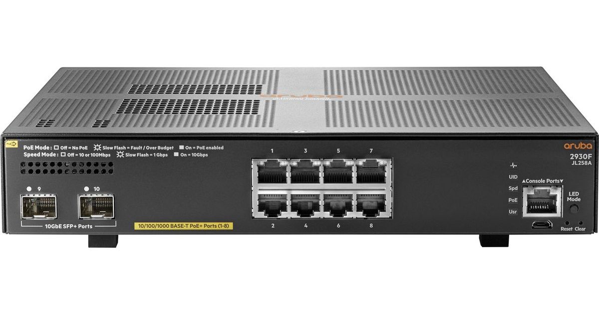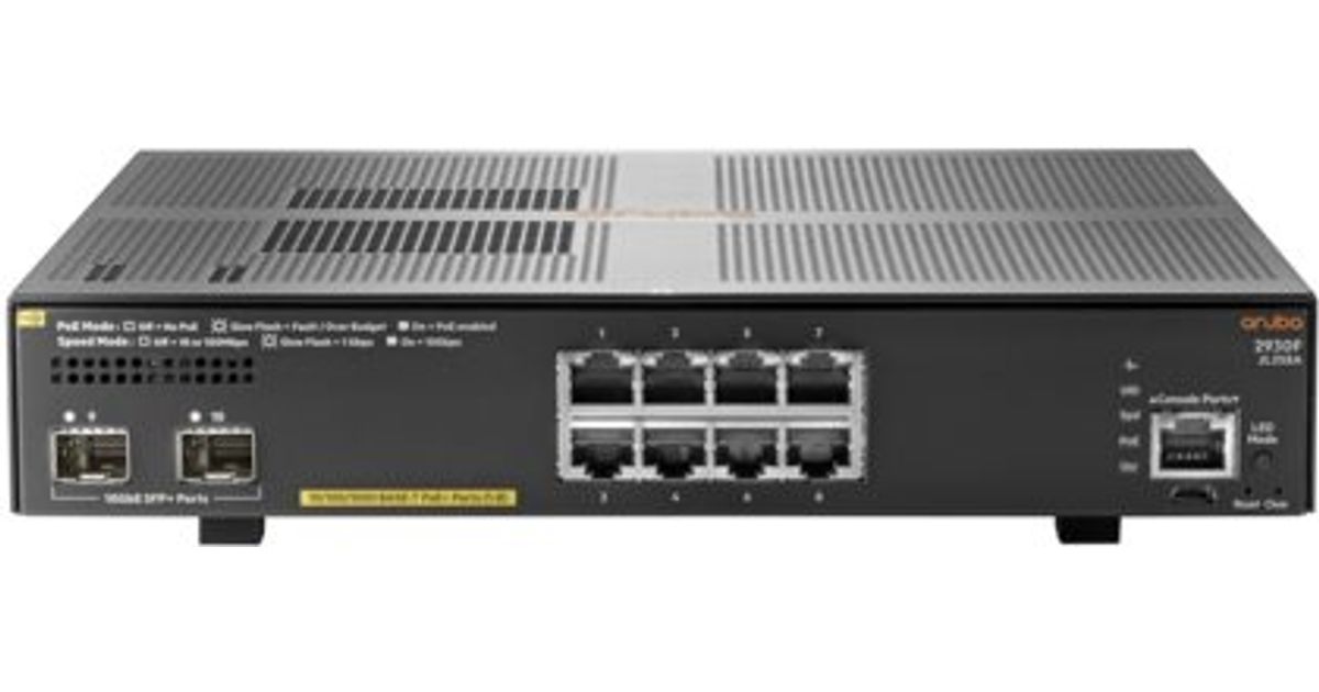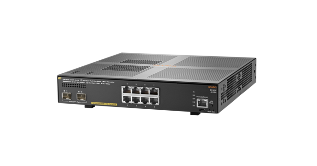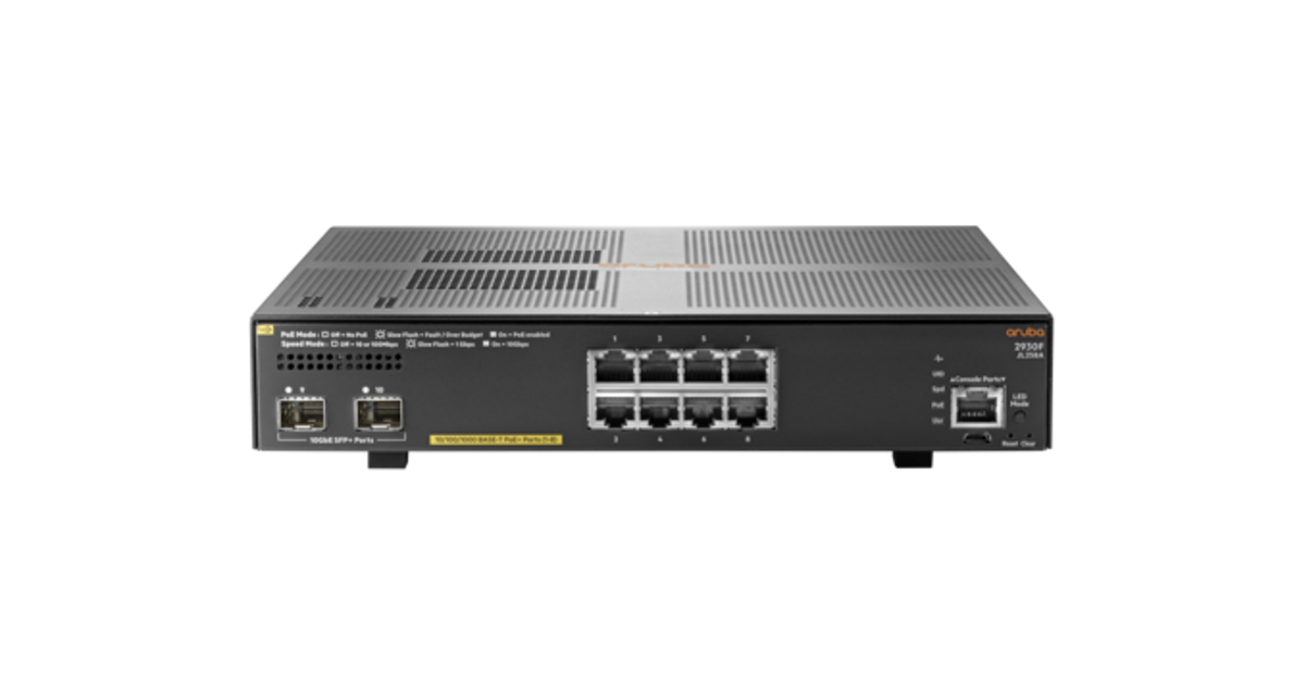 Aruba, a Hewlett Packard Enterprise company 2930F 8G PoE+ 2SFP+ Juhitav L3 Gigabit Ethernet (10/100/1000) Power over Ethernet tugi 1U Hall