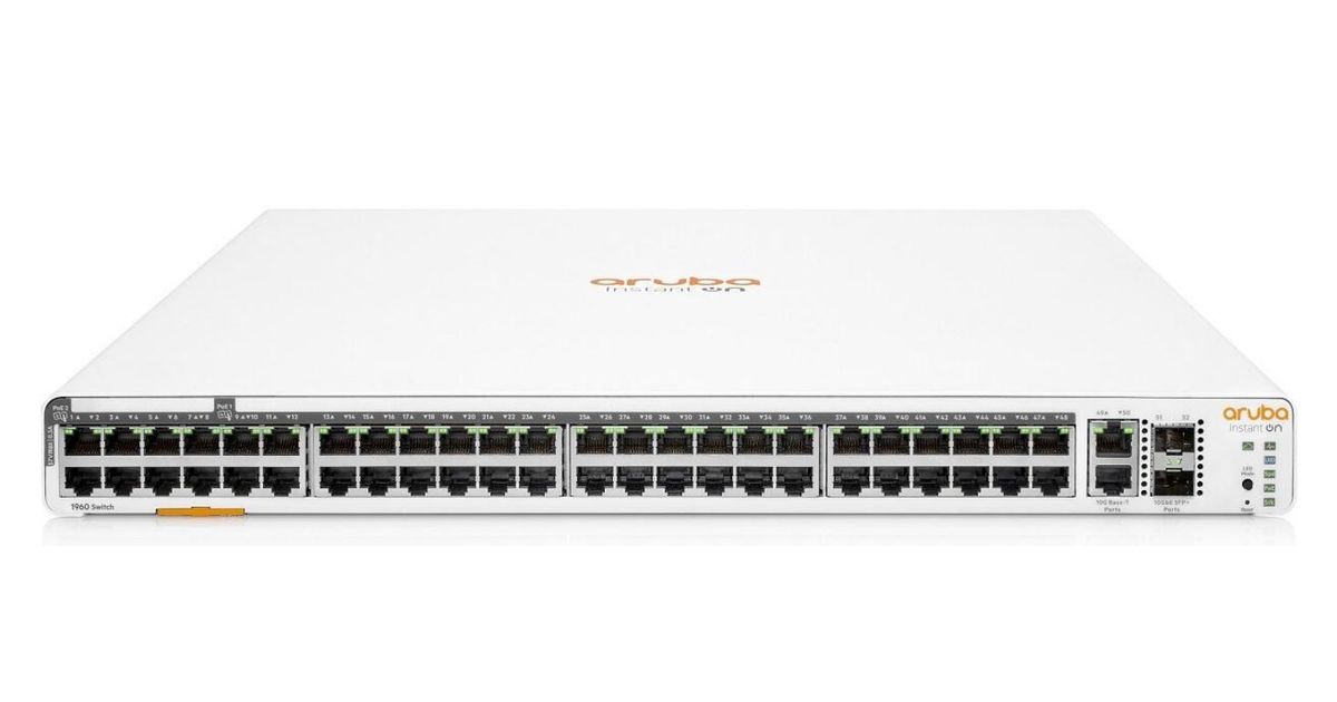 Aruba, a Hewlett Packard Enterprise company Aruba Instant On 1960 48G 40p Class4 8p Class6 PoE 2XGT 2SFP+ 600W Juhitav L2+ Gigabit Ethernet (10/100/1000) Power over Ethernet tugi 1U Valge