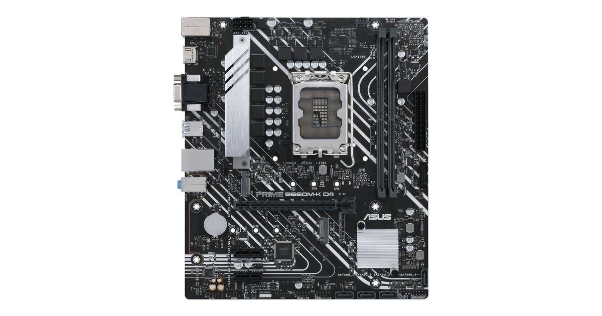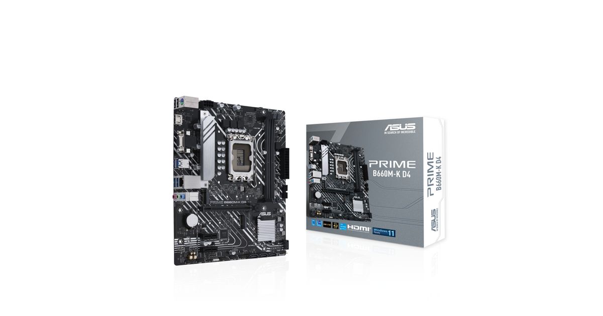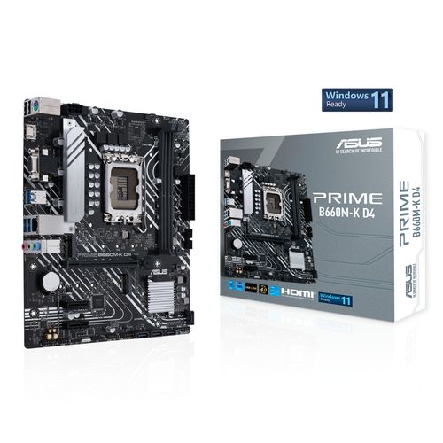 ASUS PRIME B660M-K D4, Intel, LGA 1700, Intel® Celeron®, Intel® Core™ i3, Intel® Core™ i5, Intel® Core™ i7, Intel® Core™ i9,..., LGA 1700, DDR4-SDRAM, 64 GB