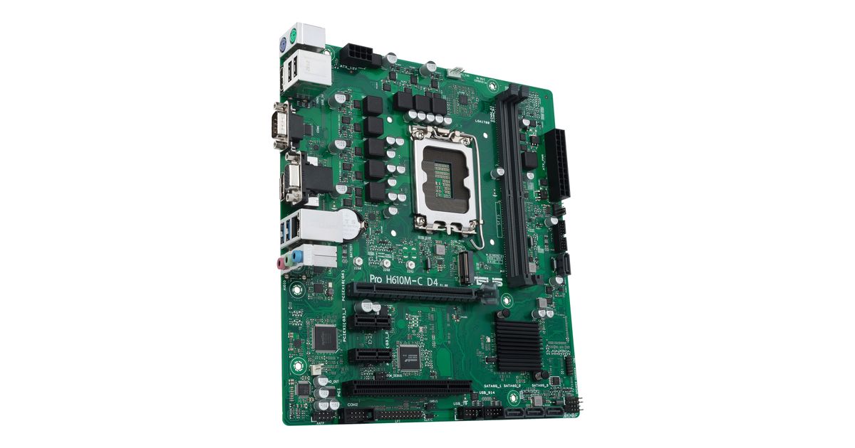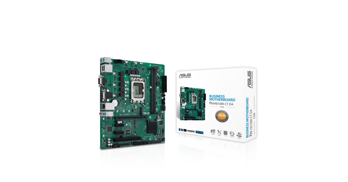 ASUS PRO H610M-C D4-CSM, Intel, LGA 1700, Intel® Celeron®, Intel® Core™ i3, Intel® Core™ i5, Intel® Core™ i7, Intel® Core™ i9, Intel® Pentium®, DDR4-SDRAM, 64 GB, DIMM