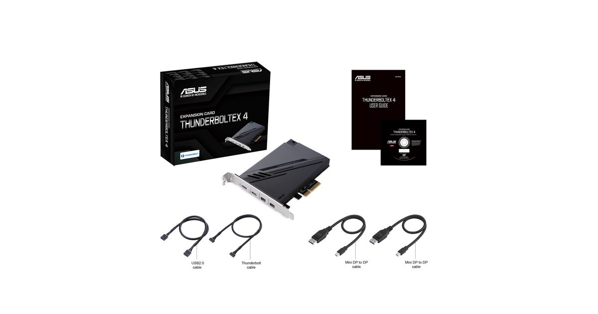 ASUS ThunderboltEX 4, PCIe, Mini DisplayPort, PCIe, Thunderbolt, USB 2.0, USB 3.2 Gen 2 (3.1 Gen 2), PCIe 3.0, Must, PC, Intel Thunderbolt 4 JHL8540