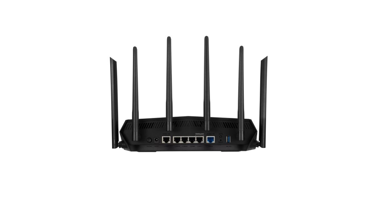 ASUS TUF Gaming AX6000 (TUF-AX6000), Wi-Fi 6 (802.11ax), Kaks sagedusala (2,4 GHz / 5 GHz), Ethernet LAN, Must, Laua peale asetatav ruuter