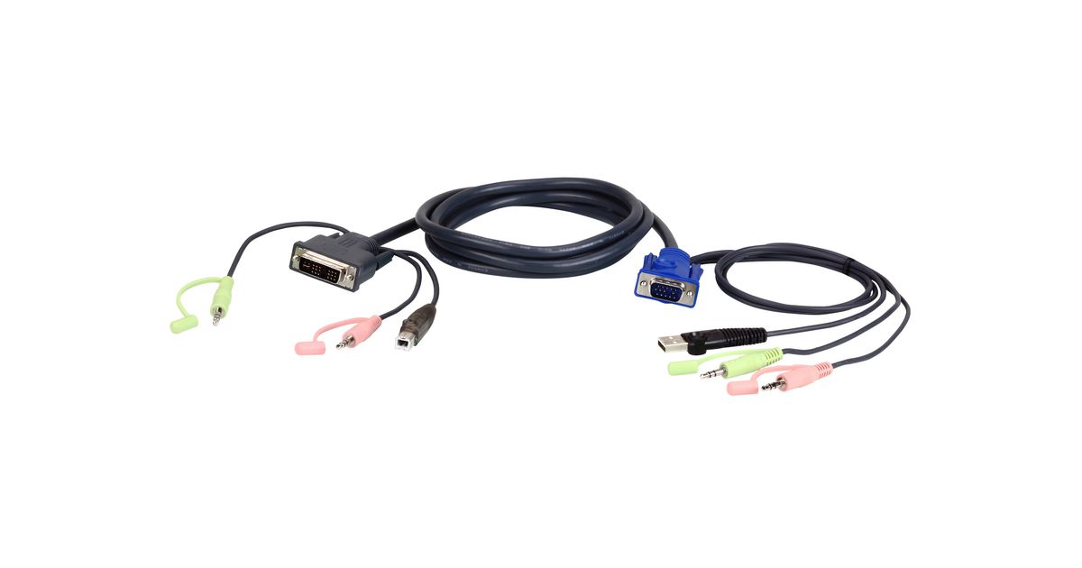 ATEN 2L-7DX2U, 1,8 m, VGA (D-Sub) + 3,5mm + USB Type-A, DVI-I + 3.5mm + USB Type-B, Meessoost, Meessoost, Must, Roheline, Roosa