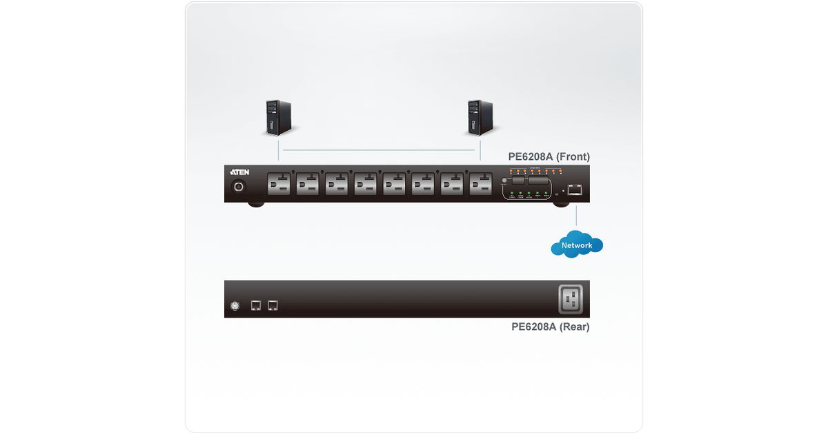 ATEN PE6208G, Jälgitud, 1U, Horisontaalne, Metall, Must, 8 vahelduvvoolu kontakt