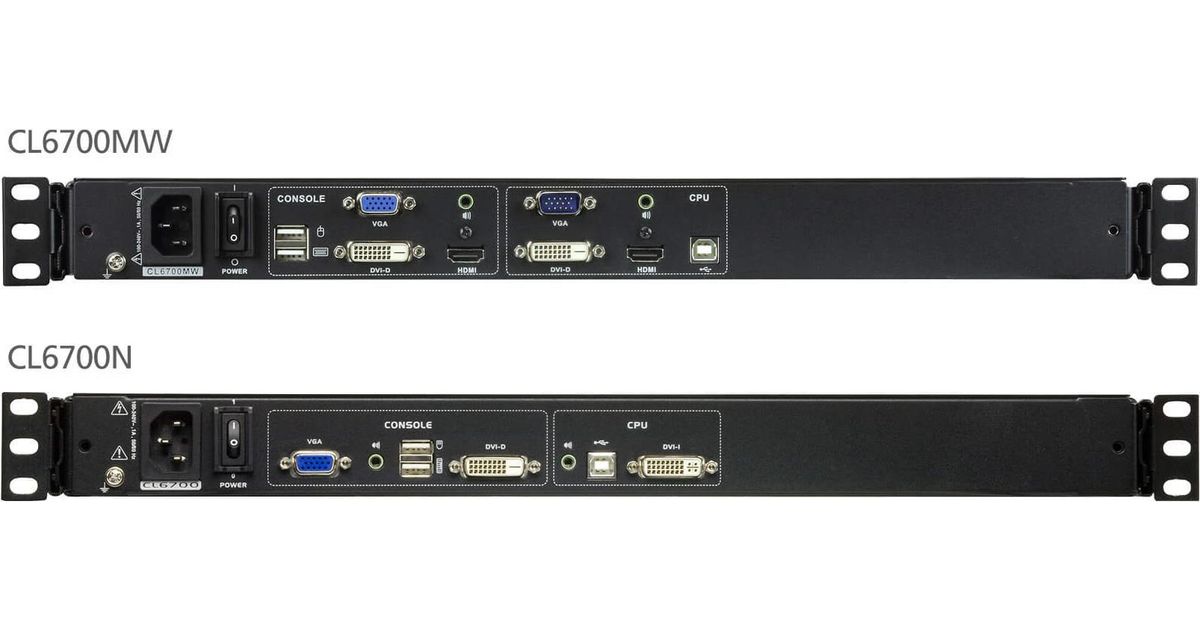 Aten Single Rail LCD Konsole (USB - HDMI / DVI / VGA) - 1920 x 1080 Pixel - Full HD - Rack-Einbau - 19,4 W - 1U - Schwarz (CL6700MW GB)