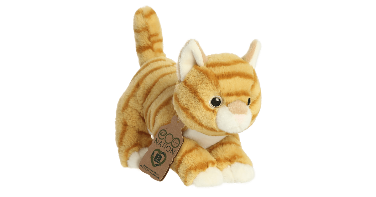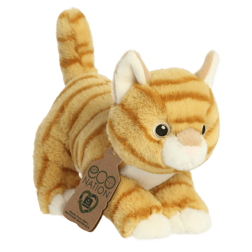 Tutvustame Aurora Worldi uhiuut kollektsiooni - Eco Nation, mis on 100% taaskasutatud materjalidest valmistatud täielikult keskkonnasäästlik pehmete mänguasjade valik. Aurora Wold tahab anda enda panuse rohelisema Maa loomiseks. Eco Nation sarja pehmete mänguasjadega saad oma koju tuua erilise sõbra, kes on äärmiselt pehme ning kvaliteetne. Oranžil triibulisel kassikesel on imearmsad tikitud silmad. Mänguasjal on kaelas Eco Nationi silt, mis on samuti valmistatud 100% ringlussevõetud materjalidest.