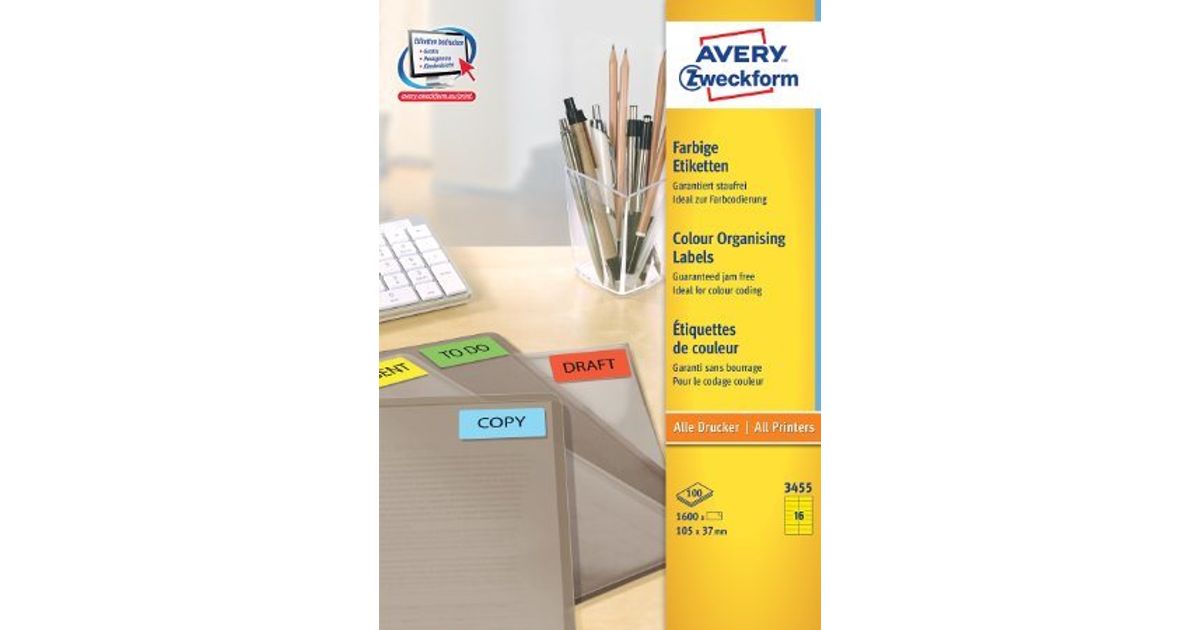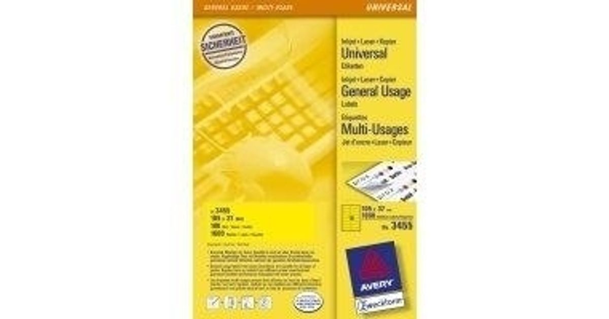 Avery 3455, Kollane, Iseliimuv printerisilt, A4, Paber, Laser/tint, Püsifilter