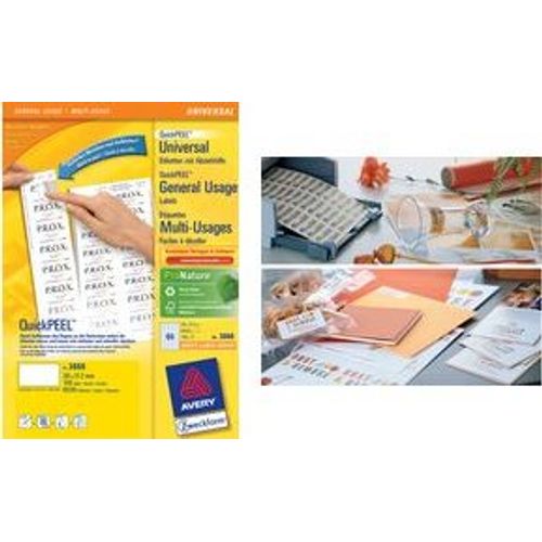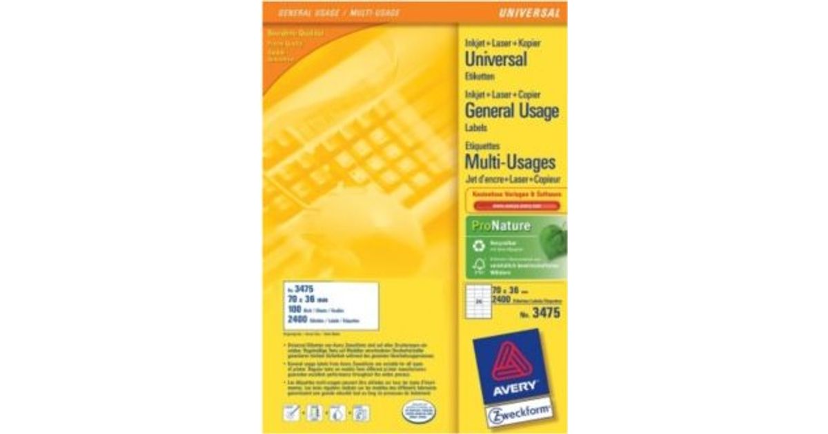 Avery 3475, Valge, Paber, Laser, 70 x 36, 2400 tk, 100 lehte