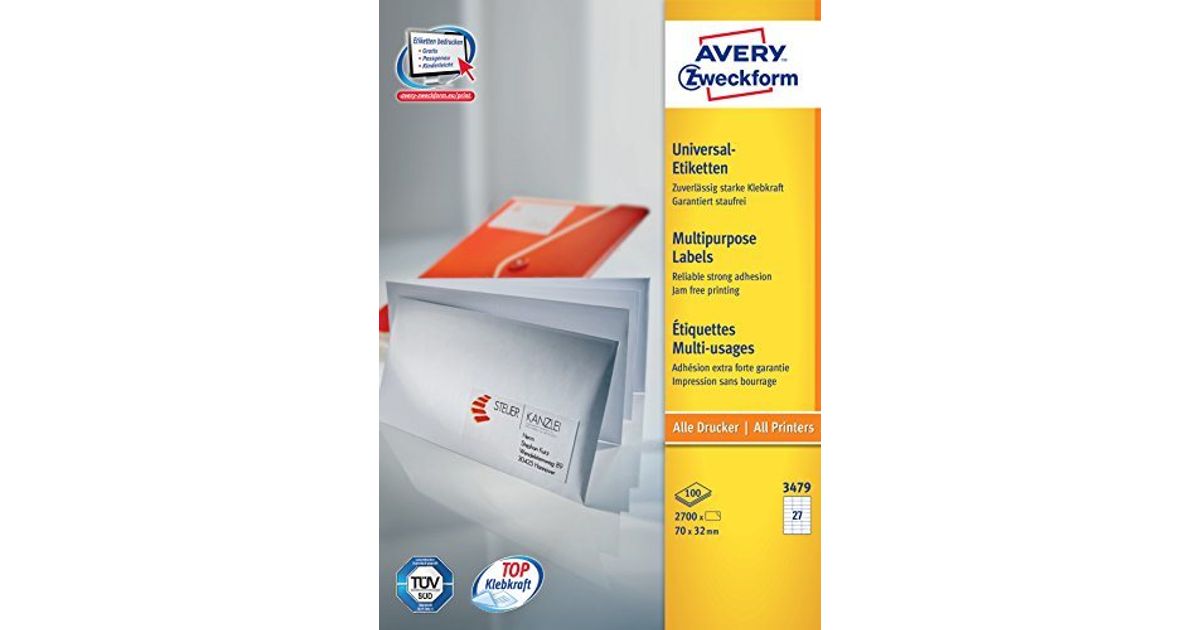 Avery 3479, Valge, Iseliimuv printerisilt, A4, Paber, Laser/tint, Püsifilter