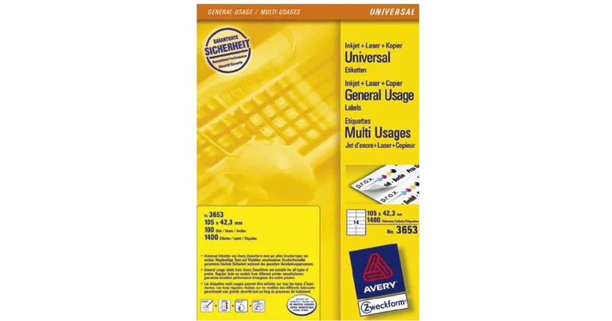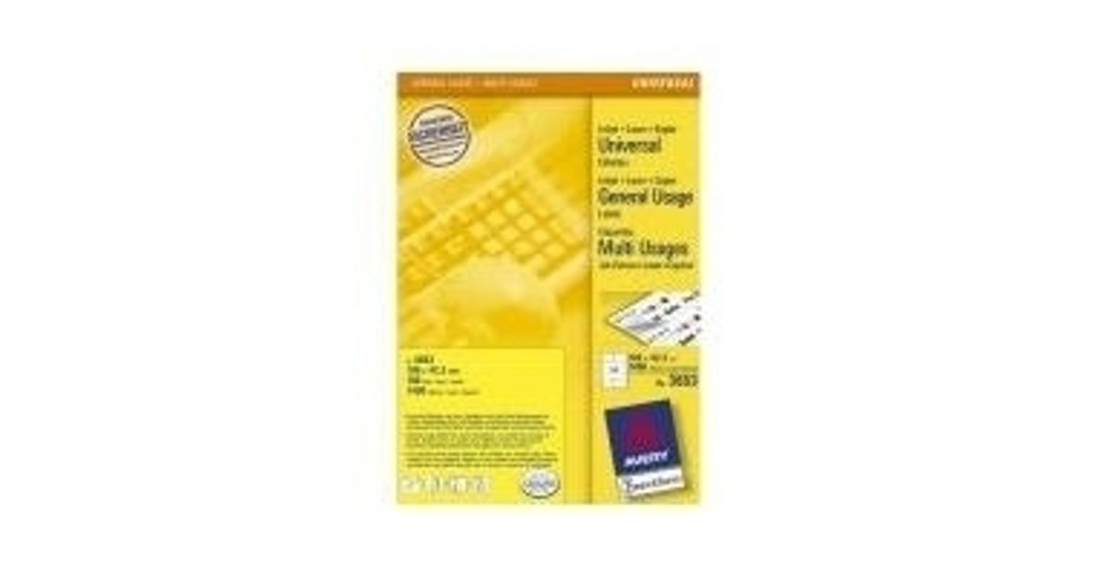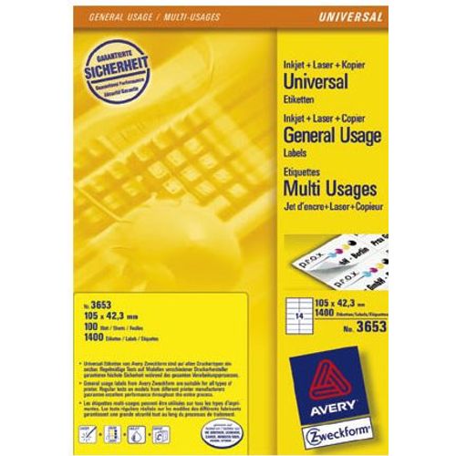Avery 3653 kleebisetikett Nelinurk Püsifilter Valge 1400 tk