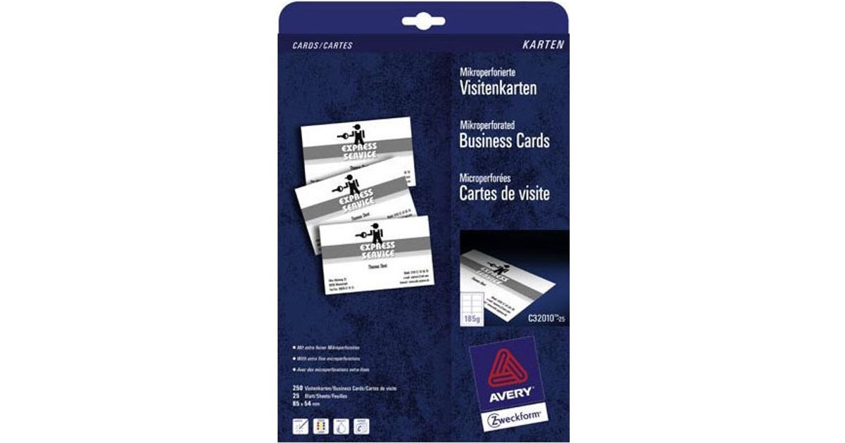 Avery C32010-25 visiitkaart Laser/tint Papp Valge