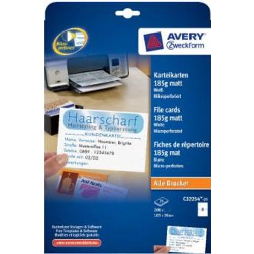 Avery C32254-25 kartoteegikaart Valge 200 tk