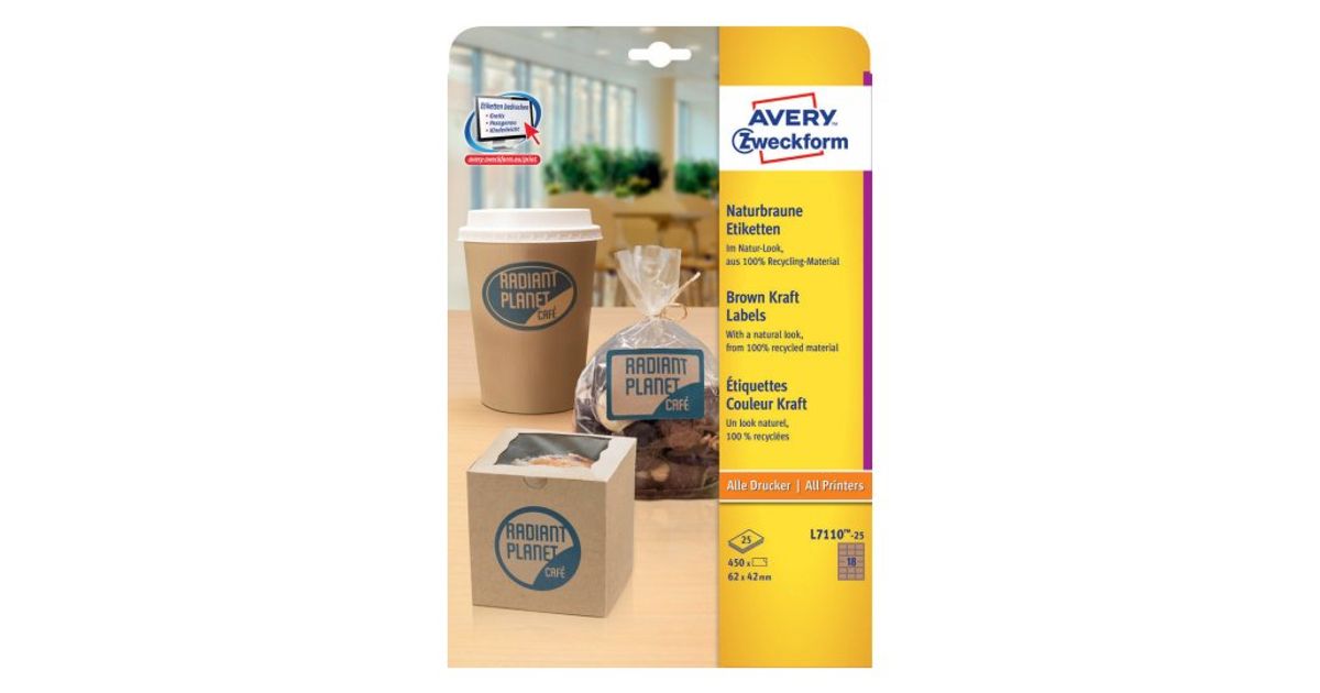 Avery L7110-25 kleebisetikett Ümarate nurkadega ristkülik Püsifilter Pruun 450 tk