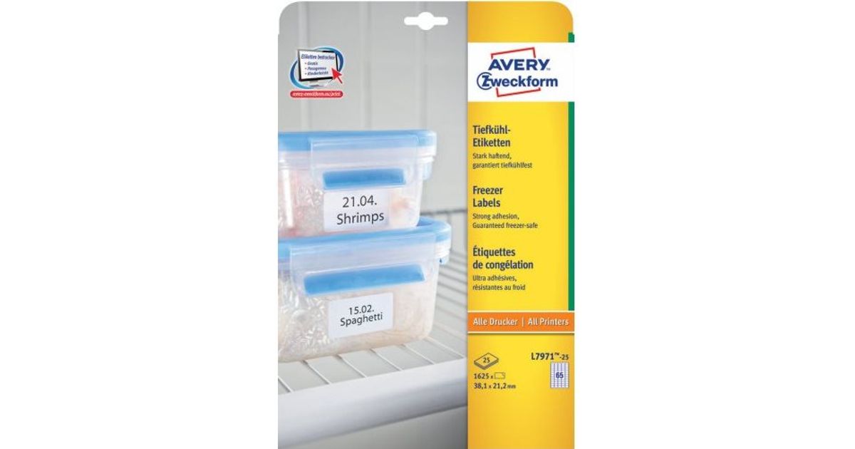 Avery L7971-25, Valge, Ümarate nurkadega ristkülik, 38.1 x 21.2 mm, A4, Paber, -50 - 70 °C