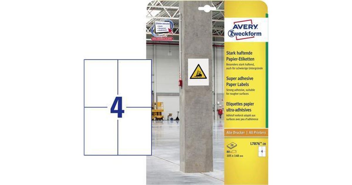Avery Zweckform L7876-20, Valge, Ümarate nurkadega ristkülik, Püsifilter, Paber, 105 mm, 148 mm