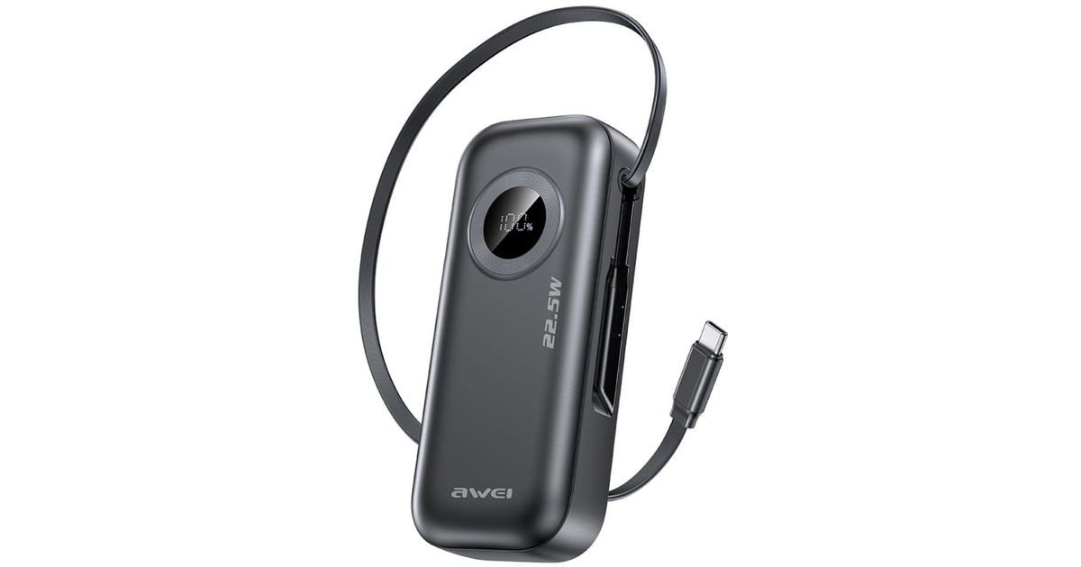 AWEI PowerBank PA-9 1000MAH 22,5W tõmmatud kaabliga must/must - Akupangad - Akud, patareid ja laadijad - Audio-video - MT Shop