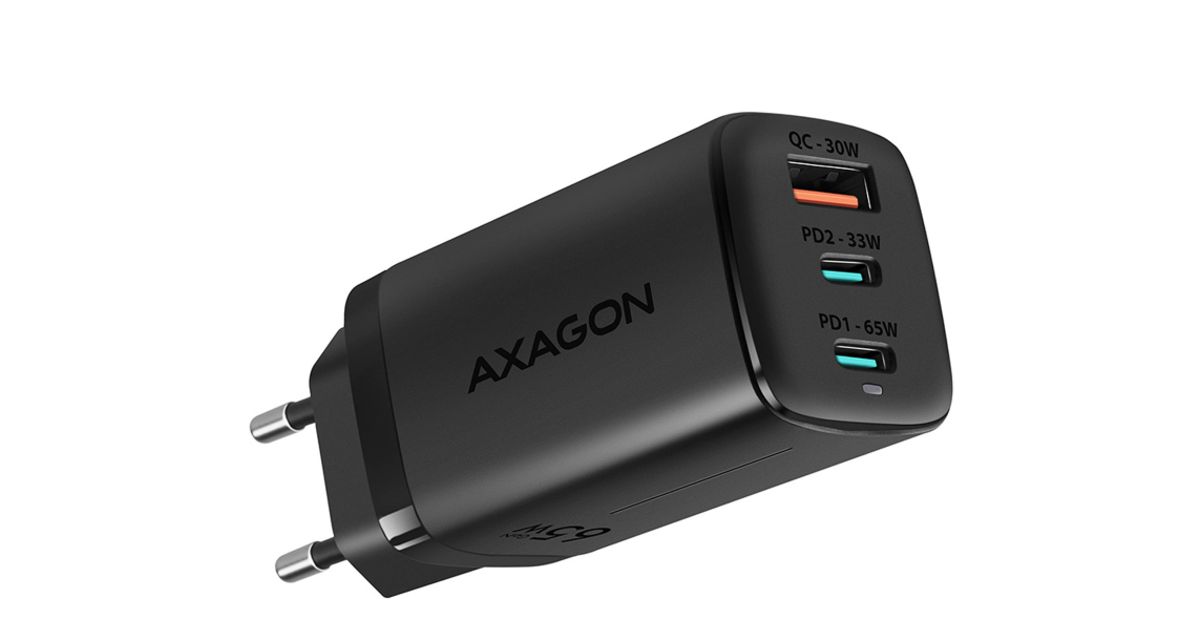 Axagon ACU-DPQ65, GAN 65W, 3x PORT, PD3.0/QC4+/PPS/Apple - MT Shop