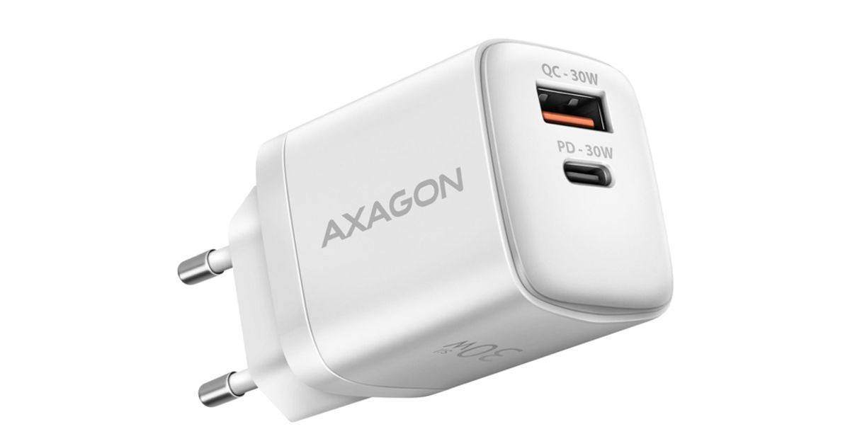 Axagon ACU-PQ30W, Sil 30W, 2x Port, PD3.0/PPS/QC4+/SFC/AFC/APPLE - MT Shop