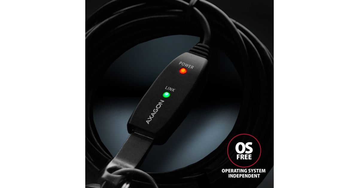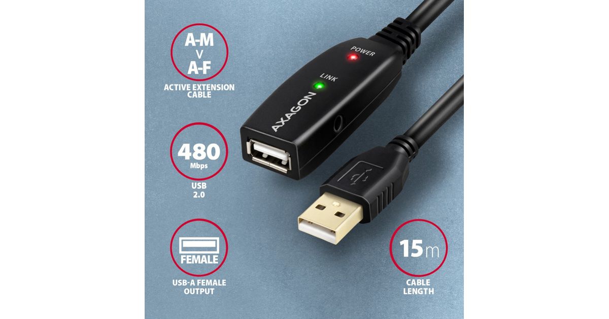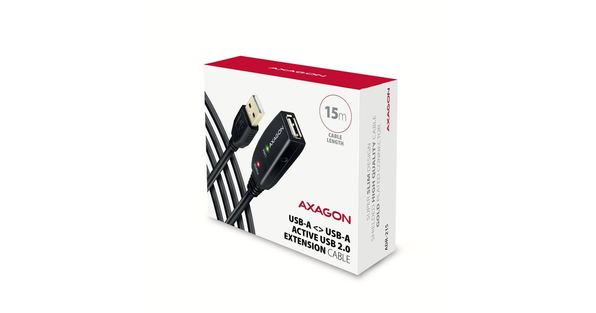 Active extension AXAGON ADR-215 USB 2.0 cable, 15 m long is ideal for connecting your computer to a USB device such as a mouse, keyboard, webcam, printer, scanner, plotter and others. The active USB repeater cable strengthens the passing signal and allows you to connect a significantly more distant USB device than the usual passive cable. The range of the cable can be further extended by using several cables in a row.