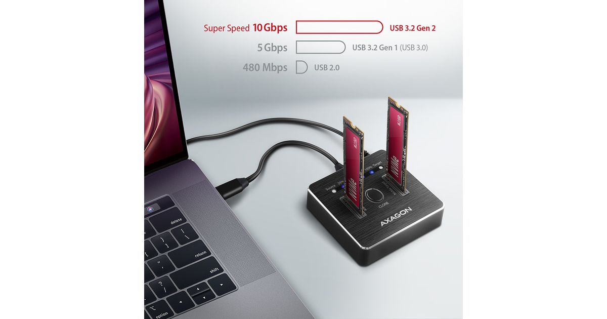 Axagon ADSA-M2C HDD/SSD dokkimisjaam USB 3.2 Gen 2 (3.1 Gen 2) Type-C