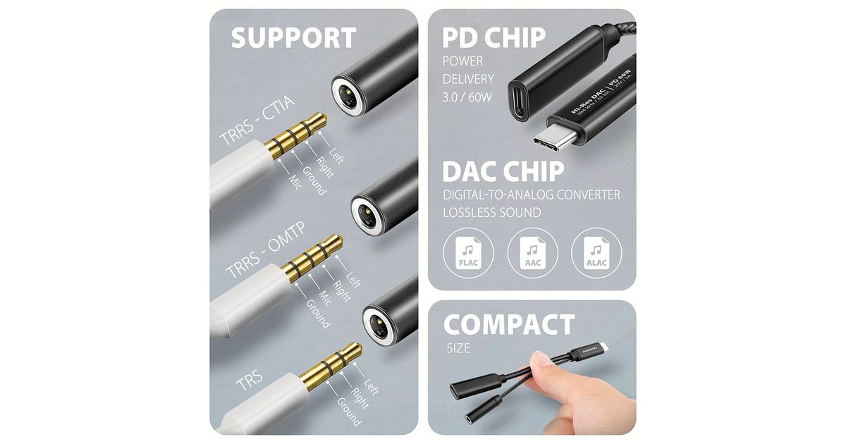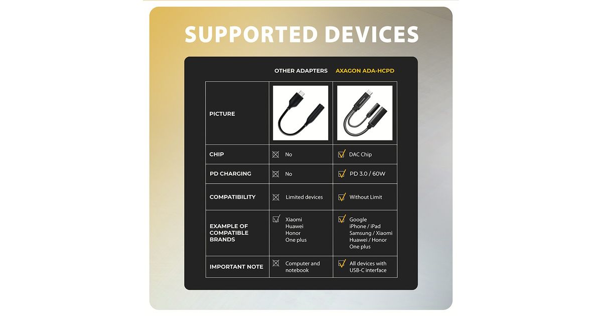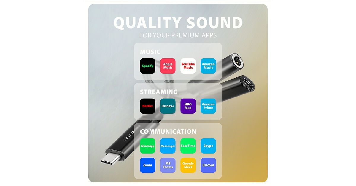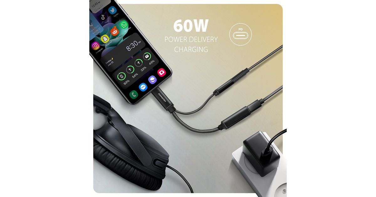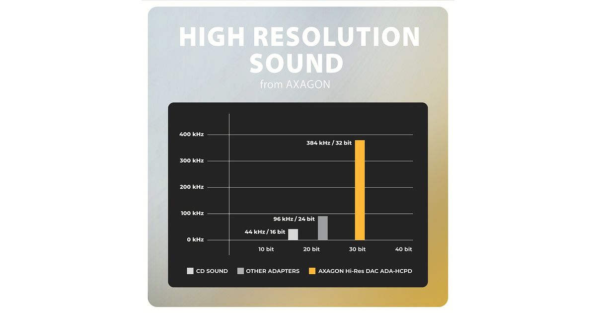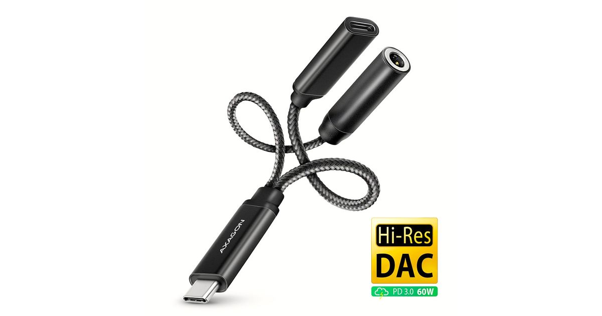 Axagon AXAGON ADA-HCPD USB-adapter, USB-C kuni 3,5 mm pesa – Hi-Res DAC heliadapter, 384kHz/32bit, stereo, PD 60W 3A