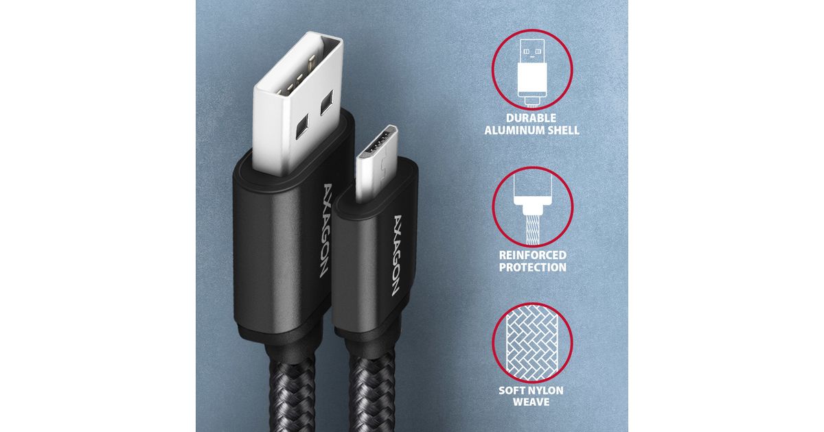 Axagon BUMM-AM15AB, 1,5 m, Micro-USB B, USB A, USB 2.0, 480 Mbit/s, Must