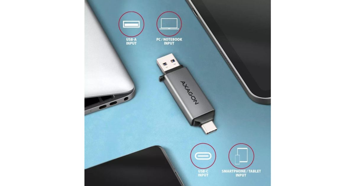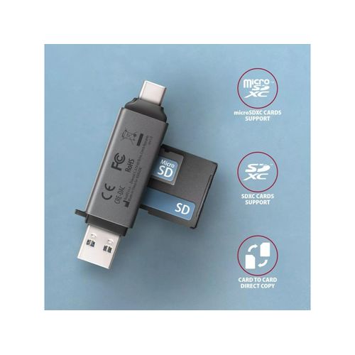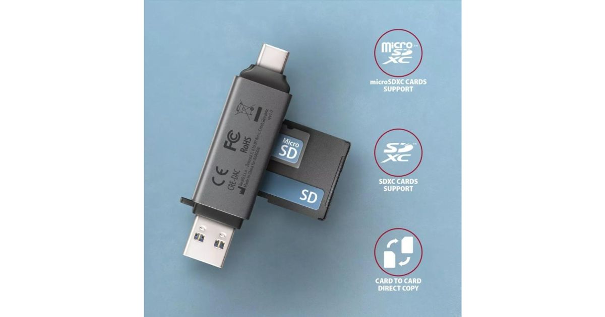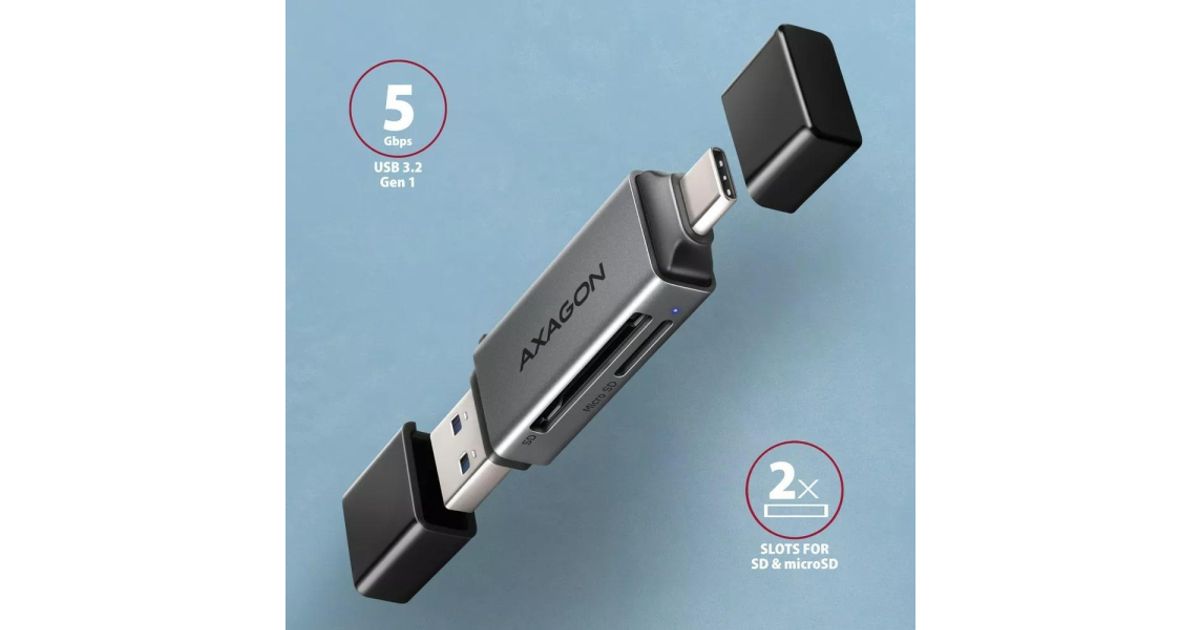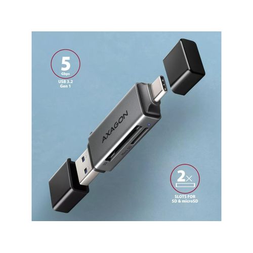 Axagon Cre-Dac, USB-C + USB-A 3.2, 2-Slot & Lun SD/MicroSD, UHS-I